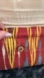 Add a pop of color to your outfit with this vibrant clutch. Featuring a striking pattern in red, yellow, and brown, this bag is perfect for any occasion. The gold chain strap adds a touch of elegance.