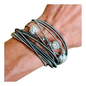 Flex Wire Silver Tone Magnetic Clasp Multistrand Bracelets