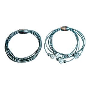 Two Flex Wire Silver Tone Magnetic Clasp Multistrand Bracelets