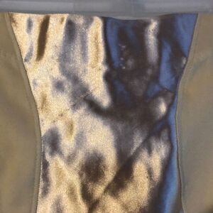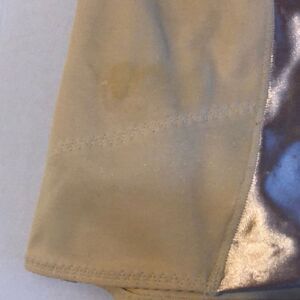 Some pulling on the satin part and an old stain (white wine perhaps?) that is faded but won't come out. Being an undergarment it really doesn't matter