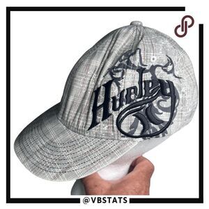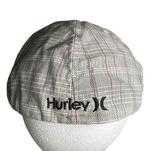 Flexfit Men's Hurley Stretch Fitted Plaid Baseball Hat Gray White Large-XL