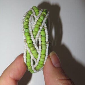 Flexible Green And Ivory Seed Woven Bracelet