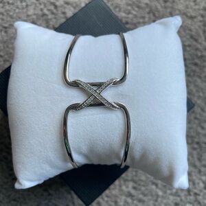 Beautiful, worn once. The cuff is flexible but I would say it’s for medium to larger wrists.