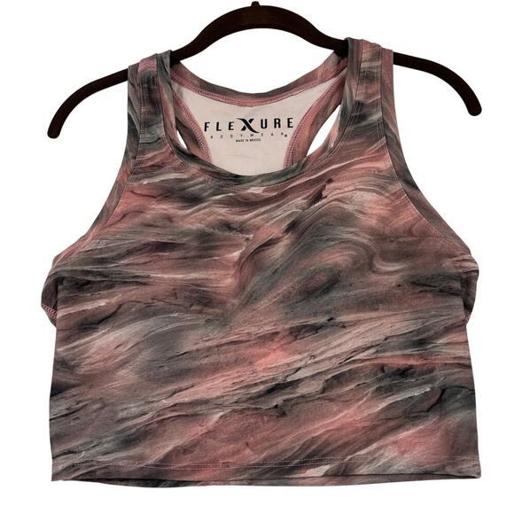 Flexure Bodywear Cropped Tank Top Size S Marbled Brown Pink Racerback Workout