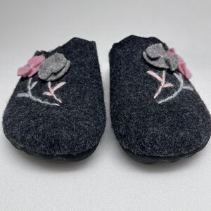 Flexus by Spring Step Flower Gray Wool Slipper Women 7.5 EU 38 Contoured Footbed