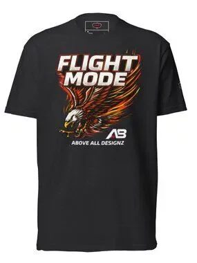 Turn heads and elevate your style with the **“Flight Mode” graphic tee by Above All Designz**. This bold, high-impact design features a fierce eagle in mid-attack, surrounded by blazing flame accents that symbolize power, focus, and unstoppable energy. The sharp, oversized “FLIGHT MODE” typography sits front and center, delivering a strong, confident statement.