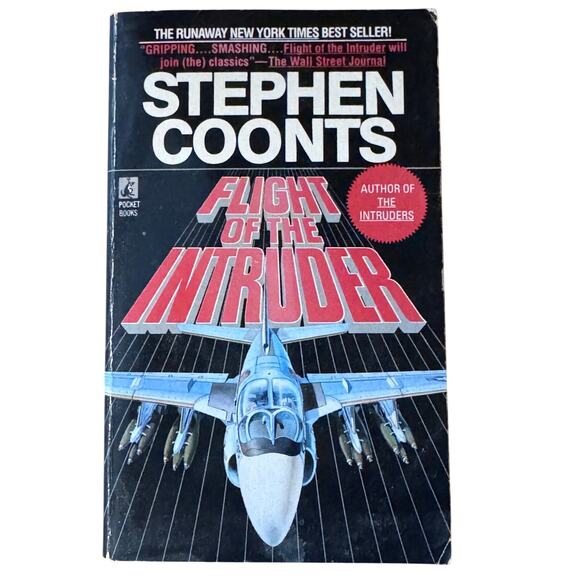 Vintage mass market paperback of Flight Of The Intruder by Stephen Coonts, Pocket Books, 1987, Vietnam War naval aviation novel featuring A-6 Intruder pilot Jake Grafton. ISBN 0671709607 / 9780671709600.