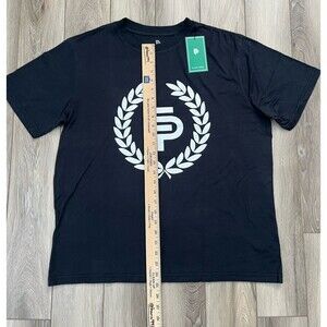 The Flint Park Original Logo Tee Shirt in black is a versatile and stylish piece made from organic cotton, featuring a classic crew neck and short sleeves. The graphic print logo adds a unique touch to this medium-sized shirt, making it perfect for sports or preppy-themed outfits. Easy to care for with machine washable instructions, this tee is breathable and suitable for all seasons, making it a great choice for summer, fall, or spring wear. Made in Pakistan, this shirt offers comfort and style for men looking for a quality addition to their wardrobe.