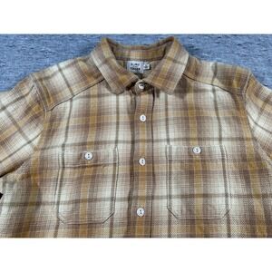 Flint and Tinder Flannel Shirt Mens Large Brown Beige Plaid Chest Pockets