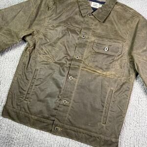 Flint and Tinder Waxed Trucker Jacket Mens Medium Forest Green Flannel Lined NEW