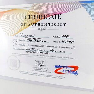 Personally overseen and signed by the masters of animation, Bill Hanna and Joe Barbera!