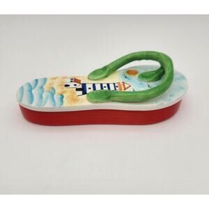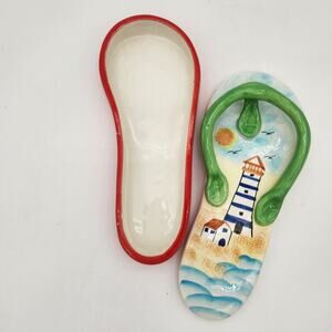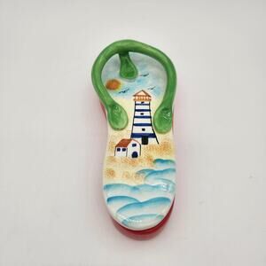 Flip Flop Trinket box 3D Porcelain Light House Beach Scene Decor Keepsake Box