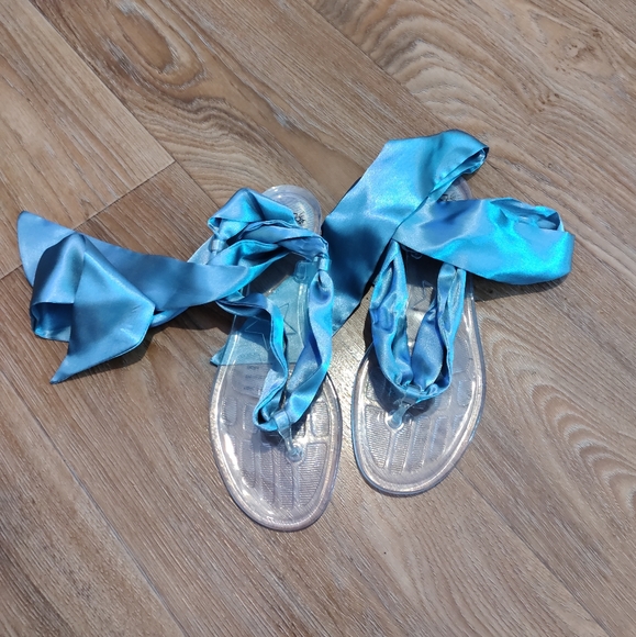 Satin String wrap-around Flip Flops