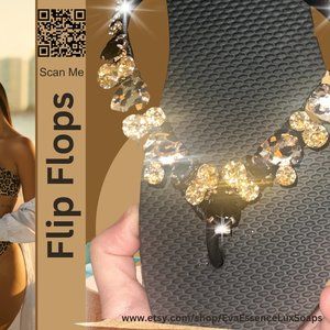 Flip Flops, Leopard, Cheetah Print, Beach Flip Flops, Rhinestones, Shoes, Sandal
