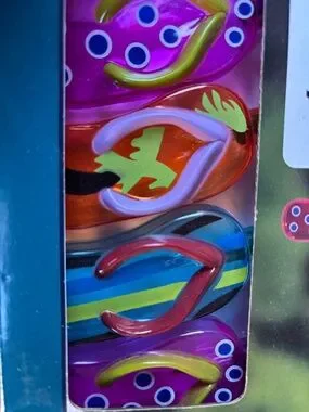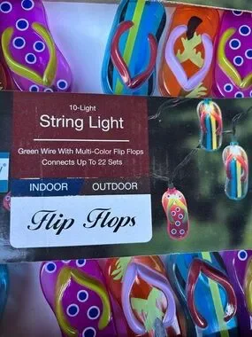 10-light flip flop string lights. Multi-color flip flop charms on green wire. Indoor/outdoor decorative string lights. Fun beach-themed party accent. Last 1 Left!