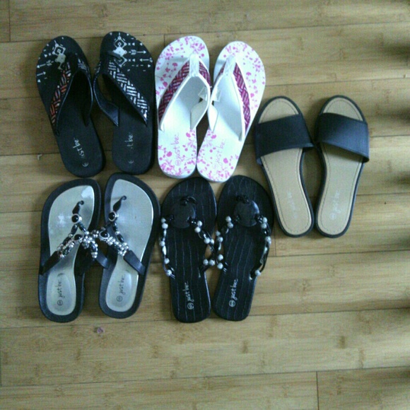 Get 5 decorative flops for same low price. A few not worn at all. A few worn a few times. All in great condition. Get a jump start on your summer shoe buying!