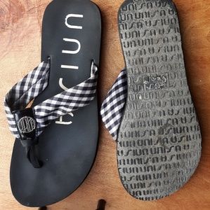 Black and white checkered flip flop