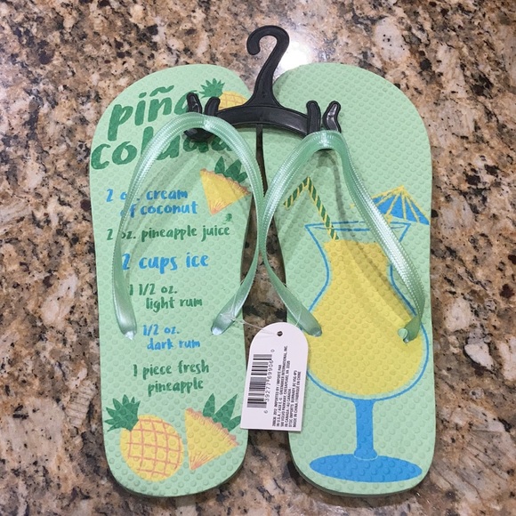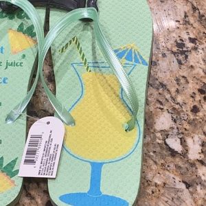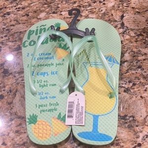Flip flops. New. Size L (9/10) green with pina colada recipe on the left one. Super cute!