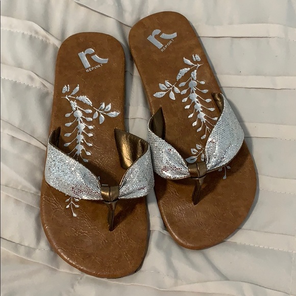 Silver flip flops, worn once