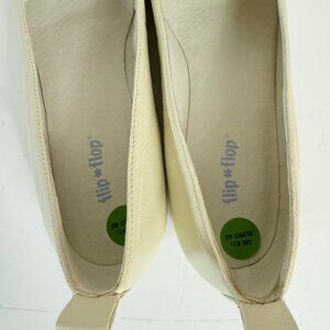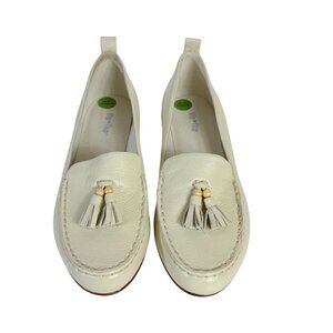 FlipFlop Cream Leather Tassel Loafers Size 8.5 Slip On Flat Stack Heel Casual