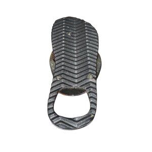 A unique bottle opener designed with a flip-flop shape and glittery straps, merging functionality with novelty for practical yet decorative use.