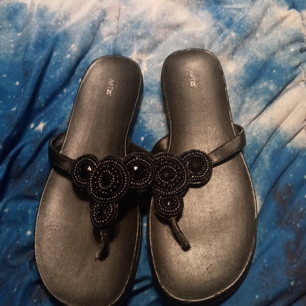 Bedazzled flip flops. Worn edges but still has some wear.