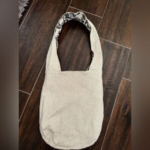 Soft and stylish, this Flipped Bird hobo shoulder bag features a black baroque damask print on natural canvas. Lightweight and reversible with a comfortable wide strap, it’s perfect for everyday wear or travel. Handmade in the USA with an eco-friendly design. Pre-owned in excellent condition with minimal signs of wear. A few tiny spots on solid side.. see pic