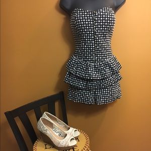 Dark blue and white romper that is sure to turn heads! So easy to dress up with heels for a night out or dress down with wedges or sandals for a daytime look. Peplum style make your butt look great!