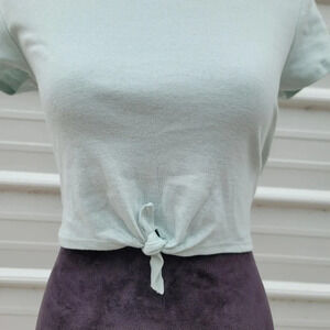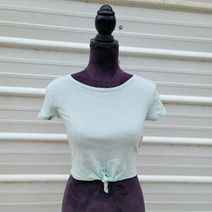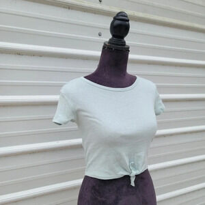 Flirtitude Active Mint Green Crop Top Womens Size S Striped Tie Front Tee Shirt