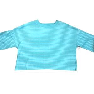 Flirtitude Active SMALL Lightweight Blue Striped Raw Hem Cropped Sweatshirt