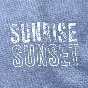 This relaxed-fit crewneck sweatshirt features a soft cotton-polyester blend and a subtle "Sunrise Sunset" graphic, offering both comfort and style.