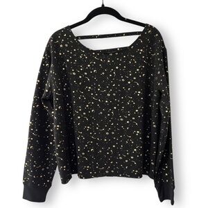 Flirtitude Active Black with metallic gold Starry Night/Crescent Moon Print Cut out Sweatshirt