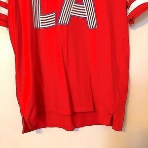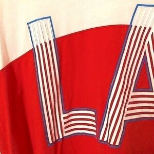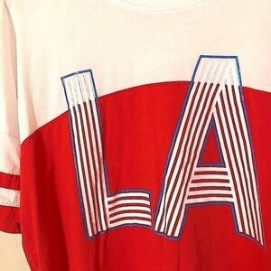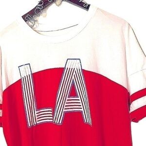 Flirtitude Crew Neck "LA" White & Red Two Toned Striped Graphic Tee Size Large