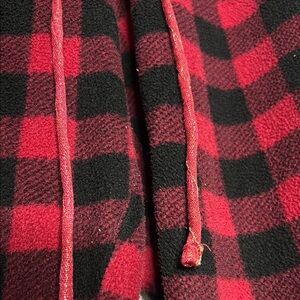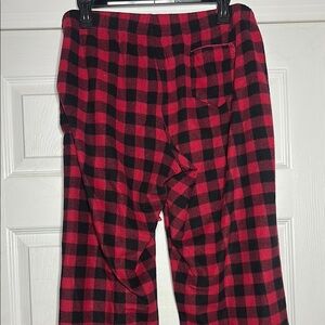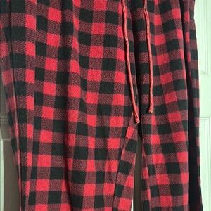 Cozy lounge pants with a classic buffalo plaid pattern. Features an elastic waistband with a drawstring. Has one small pocket on back right side. Size XL
