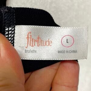 Flirtitude, Size Large, Black Floral Bralette, V-Neck, Strappy Back, Pullover