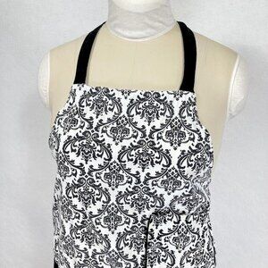 Flirty Aprons Retro Style Floral Scroll Print Black And White Apron OS