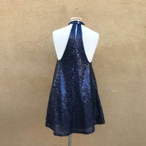 Flirty Blue Sequined Halter Mini Dress Small