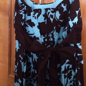 Blue/Brown floral print dress. Perfect for summer! Fit and flare with bow that can tie in the back. Never been worn
