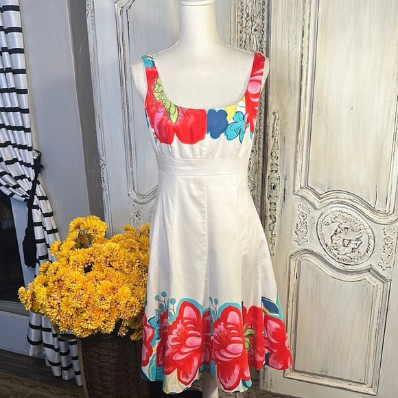 Flirty Floral Sleeveless White Gore Skirt Dress 60’s Inspired