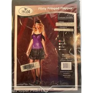 Flirty Fringed Flapper Adult Costume Medium Purple Black Sexy Dress 1920s