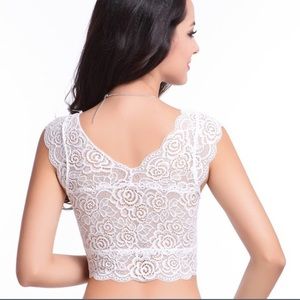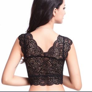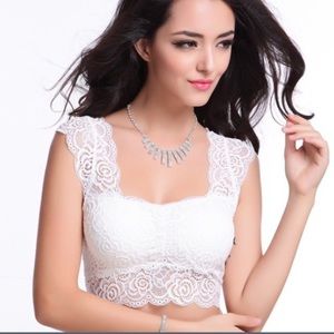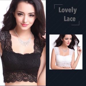 Soft and sexy stretch lace top! Can be used as lingerie, or you can wear a bra underneath and turn it into a summer top. So versatile and so cute! The tags say "One Size", but I will list them as a small, as the padded cups are small. Lots of stretch. I have them in black and white.