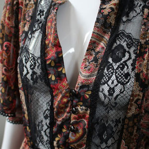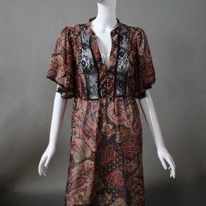 Lightweight paisley dress with see-through lace insets - size large. A perfect start for your new Fall wardrobe at bargain pricing!