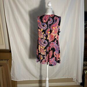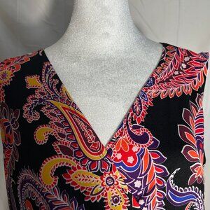 Flirty Pink Size 1X Multi color Paisley, Sleeveless V-neck Top, Lightweight, Elastic under bust.
