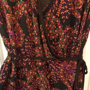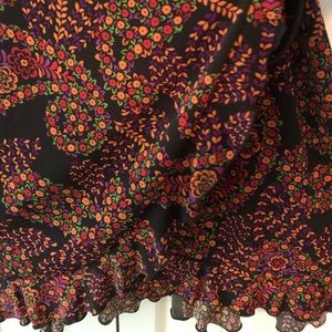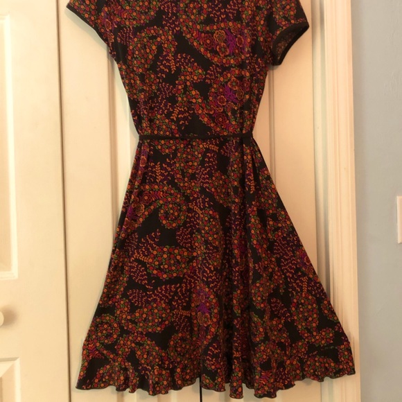 Super flirty ruffle wrap dress. Ruffle detail along the hem and the edge of the wrap. Short sleeves and hits above the knee.