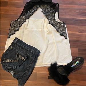 BNWT. I love this shirt. It’s sooo cute but sexy at the same time depending on what you wear under it. I have one in another color that I kept for myself. Perfect anytime anywhere too 🥰 Light weight with lace shoulders that come around to the back. Pair with your favorite bralette, shorts and a nice heel…outfit done ✅ The tag is off but the shirt has never been worn, Brand new!