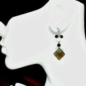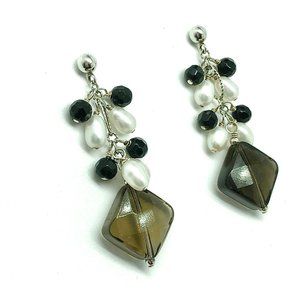 These gorgeous beaded dangle earrings add captivating sparkle to your look. Crafted of sterling silver, each earring features tiers of white pearl and black faceted stones, expertly set off by checkerboard-cut smoky quartz stones. A perfect accessory to pair with earth tones, tans, and blacks, adding flair to any ensemble