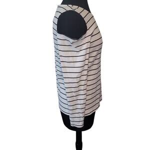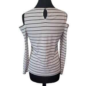 Flirty Striped Cold Shoulder Blouse Petite L Soft Goth Romantic City Glam EUC