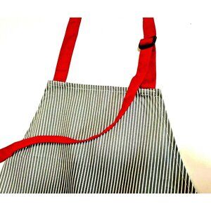 Flirty Unisex Full Apron Striped Blue Red 3 Pockets Adjustable Strap Cotton New