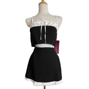 Flirty and Fun Black Bandeau & Mini Skirt With White Trim Built-In Shorts Set L