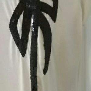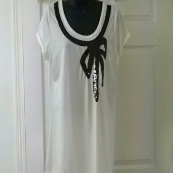 A cute top with a sequined bow and sequins around neckline. Sleeves have a slight rolled look. Would look so great with jeans and boots. Never worn, perfect condition!